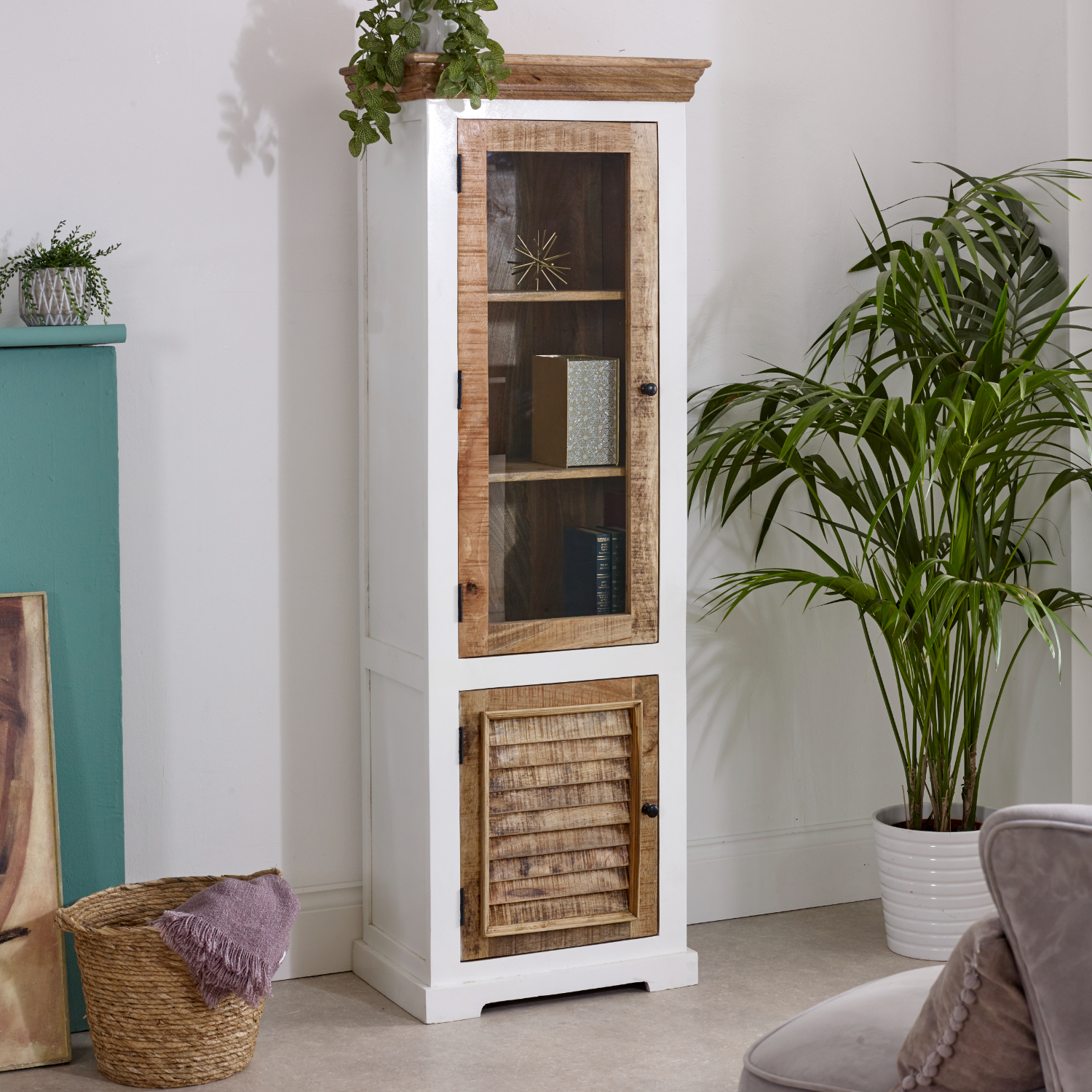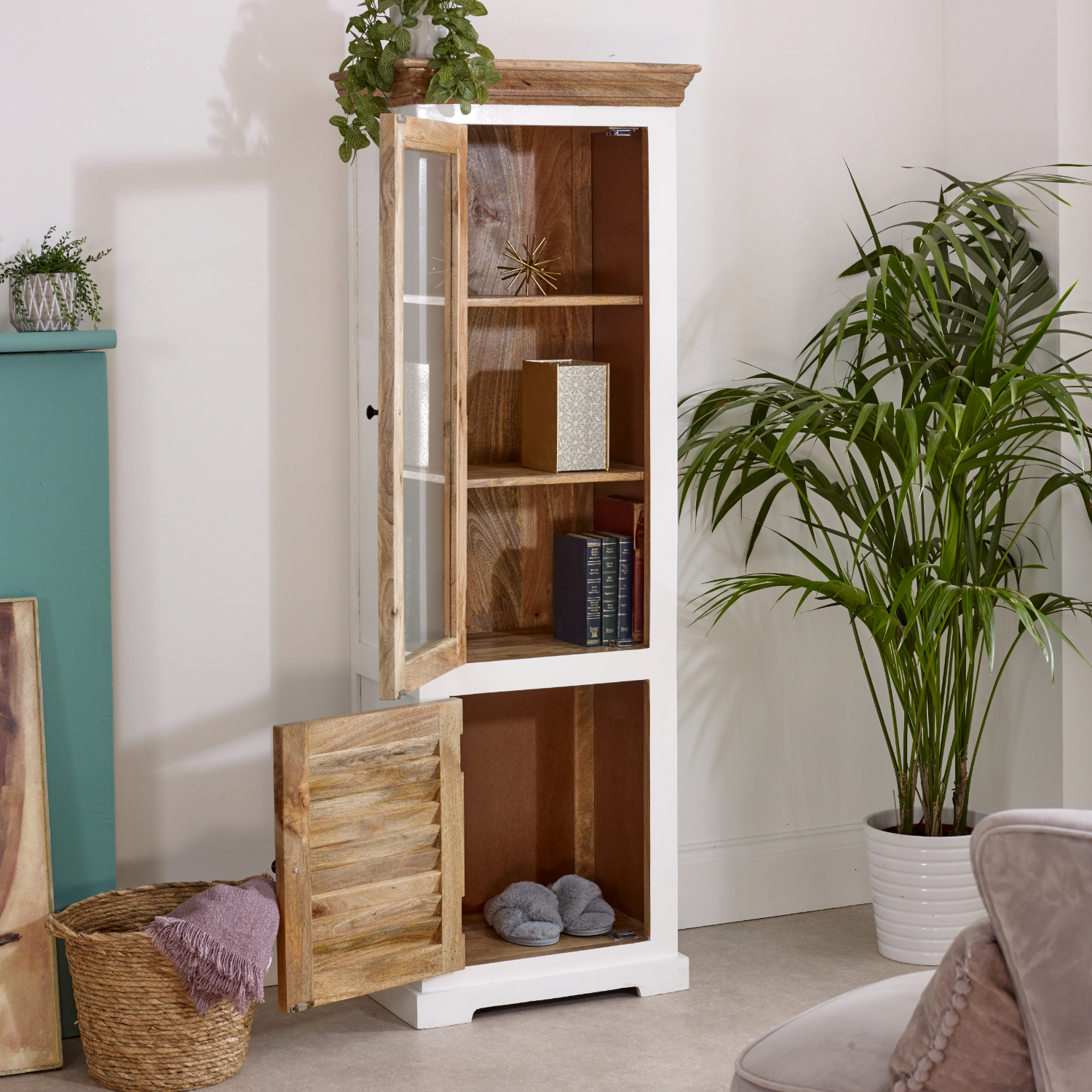 Mango bookcase/display cabinet with contrasting white and natural colour finish.
