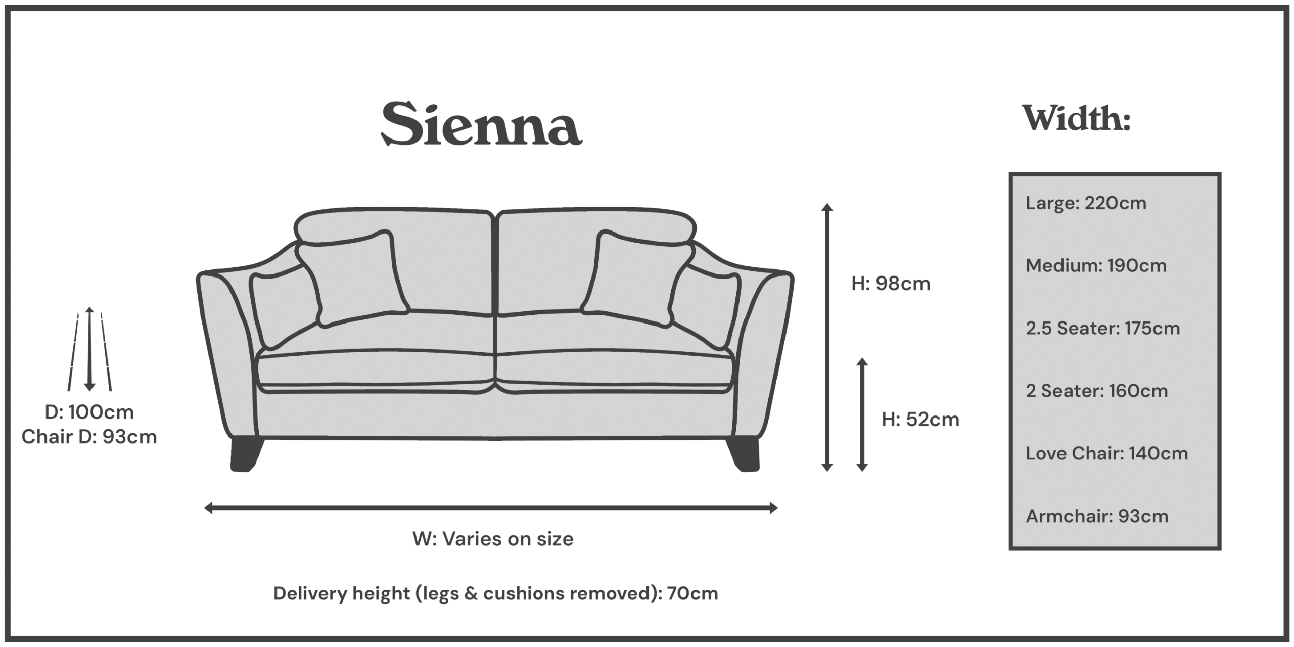 - Handcrafted Quality: Each Sienna is hand finished with care, so expect a small tolerance of +/- 3 cm in dimensions, just a little quirk of true craftsmanship.