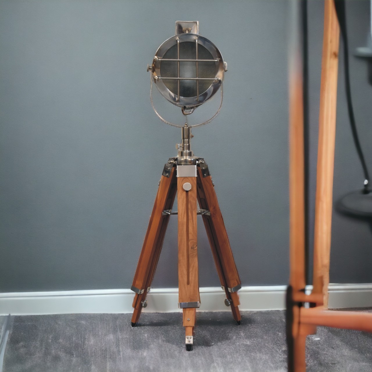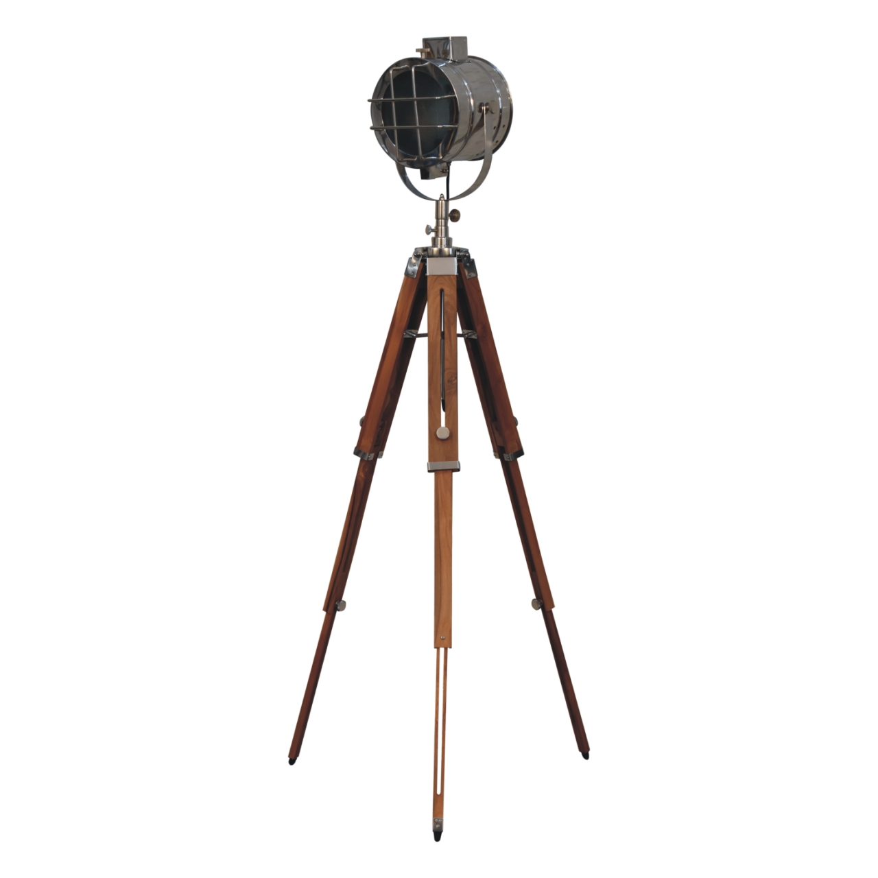 The trendy caged floor lamp is perfect for any style of home. It features 3 foldable tripod legs which have a natural finish paired with a chrome finish spotlight head making it the ultimate statement piece in any room of the home.