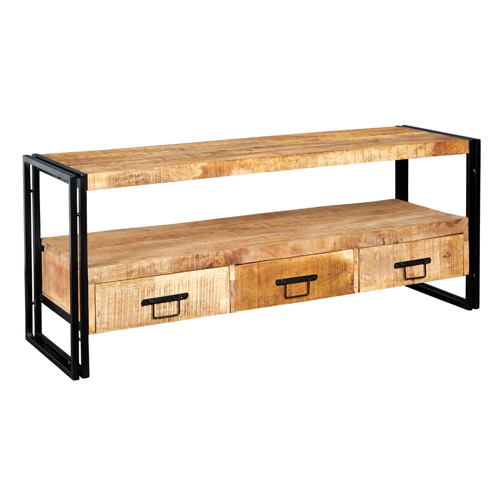 Industrial Large Tv stand featuring wood and Metal and 3 generous drawers