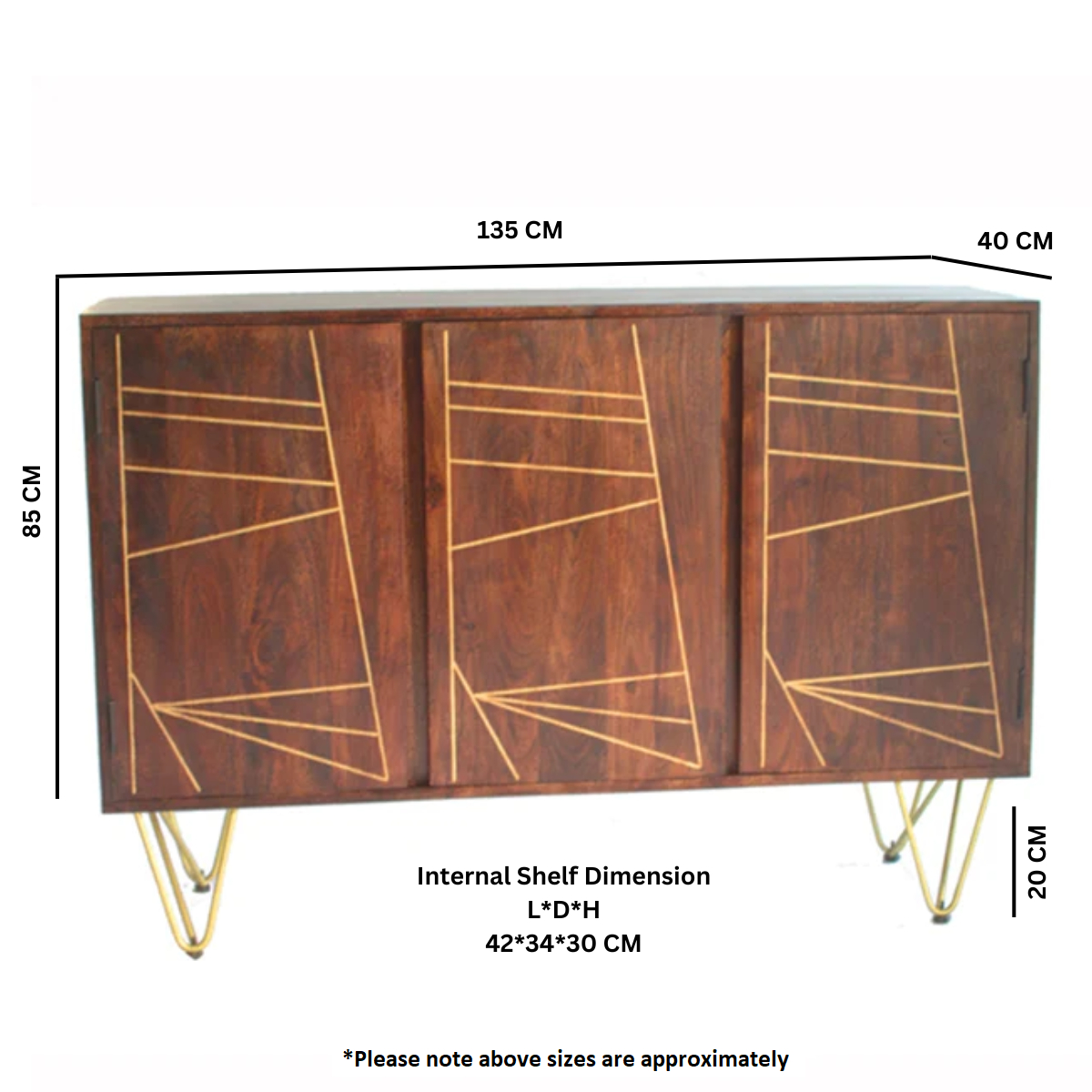 This modern contemporary style furniture, combining metal inlay on solid wood, creates an abstract style, is taking furniture making to a whole new level. The angled legs made of metal add to the retro vintage look.