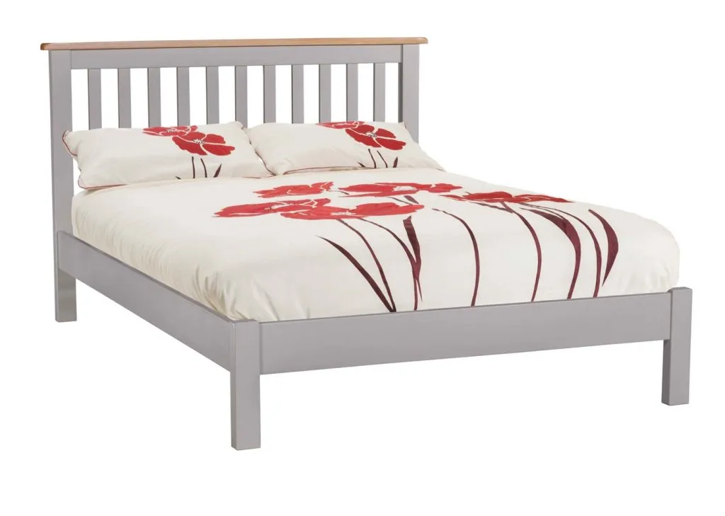 It has a painted pine base with a lacquered oak top, as well as sprung slats.