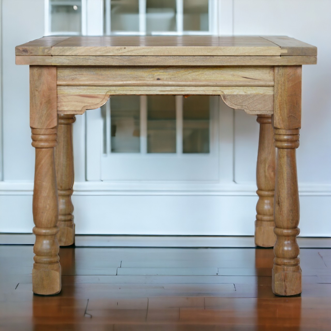 This piece has been built to last, with a simple functional design and hints of country charm; made from 100% solid Mango wood with a fine hand-distressed oak-ish finish.