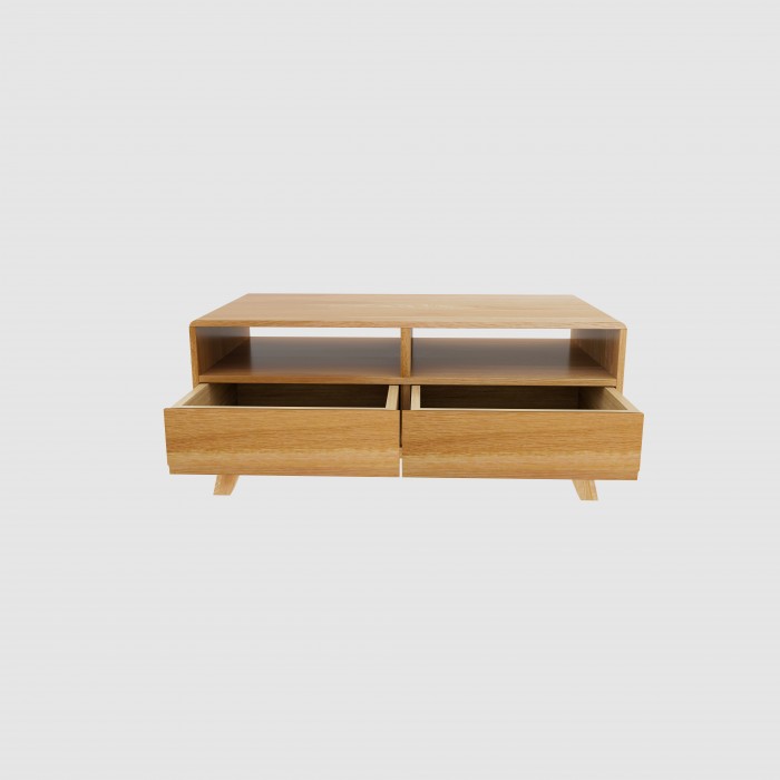 This unit is made of solid oak alongside pawlonia for the drawer boxes and back panels.