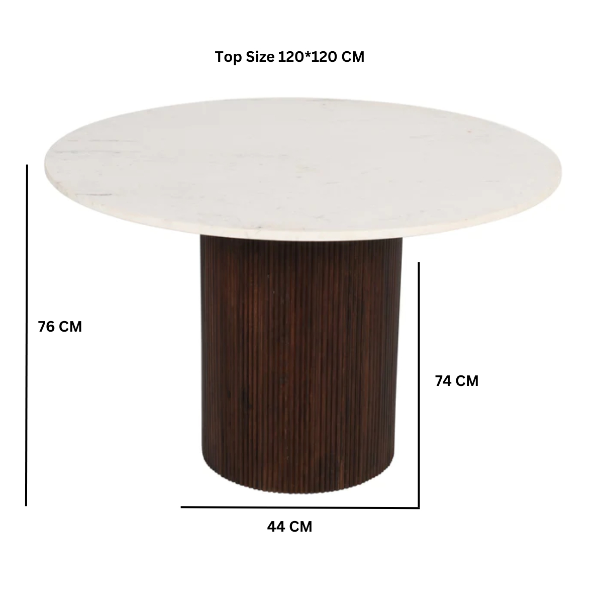 Mango wood dining table, round with a real white marble top.