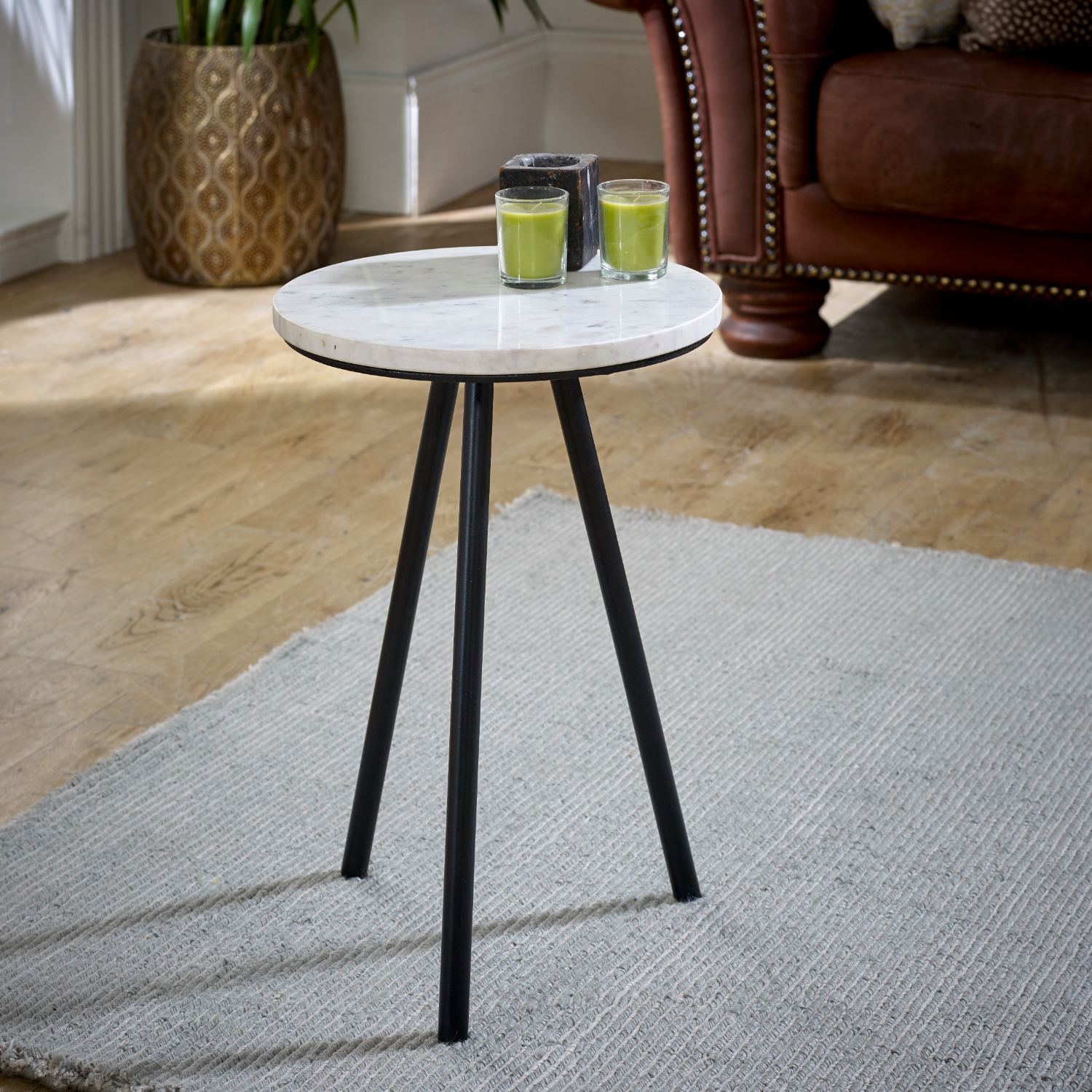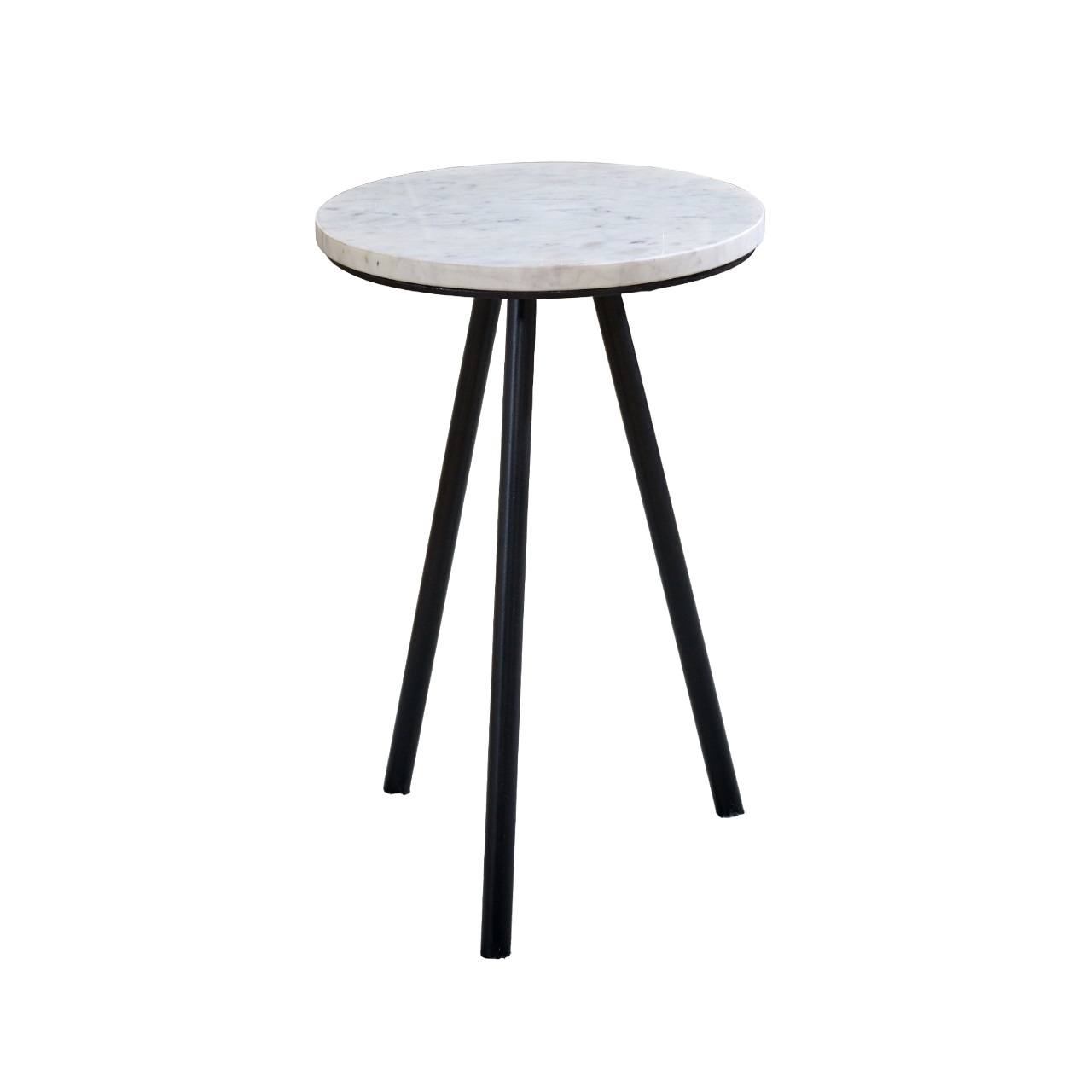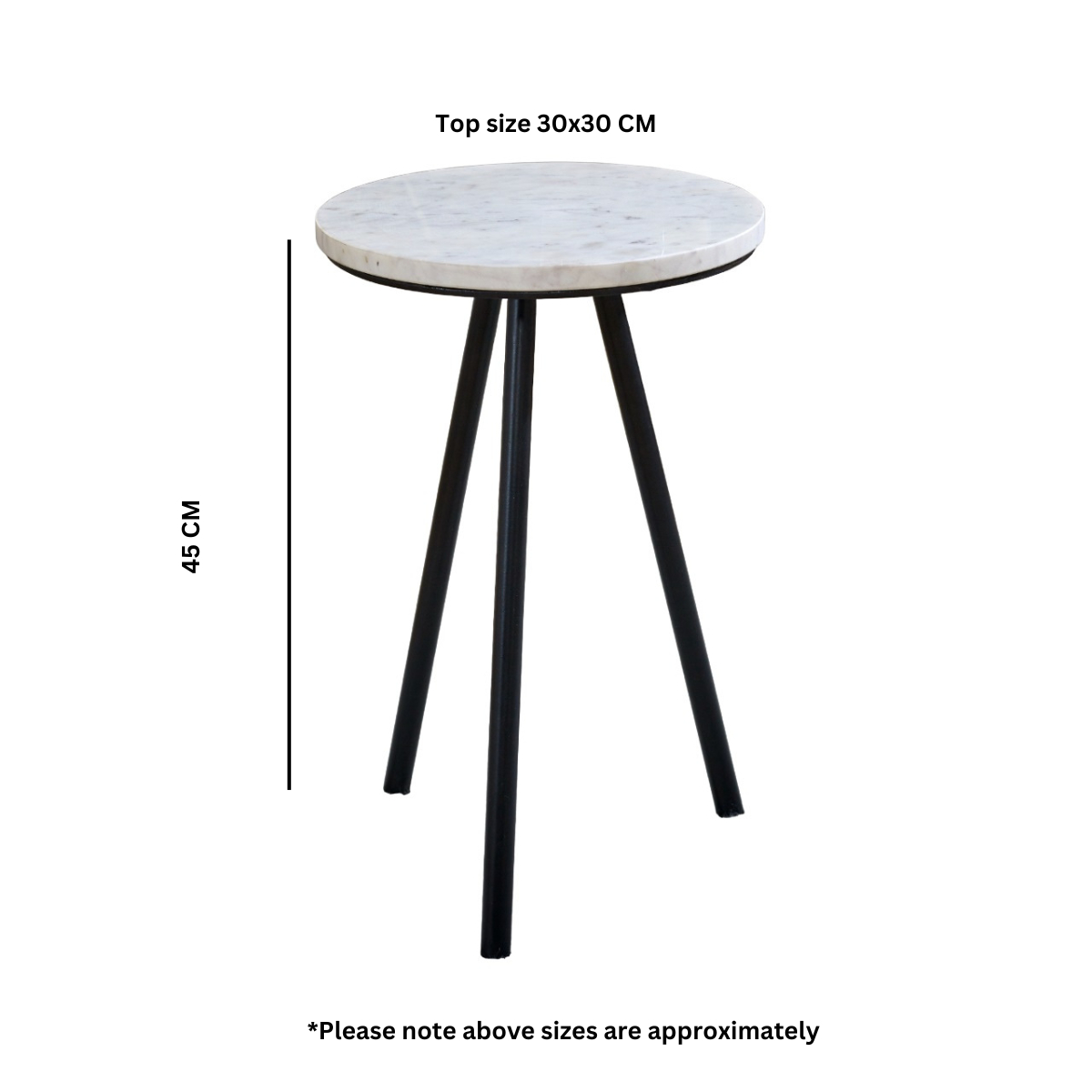 Opal side table with white marble top & metal legs. Completely handmade by our skilled craftsmen in India using eco-friendly materials.